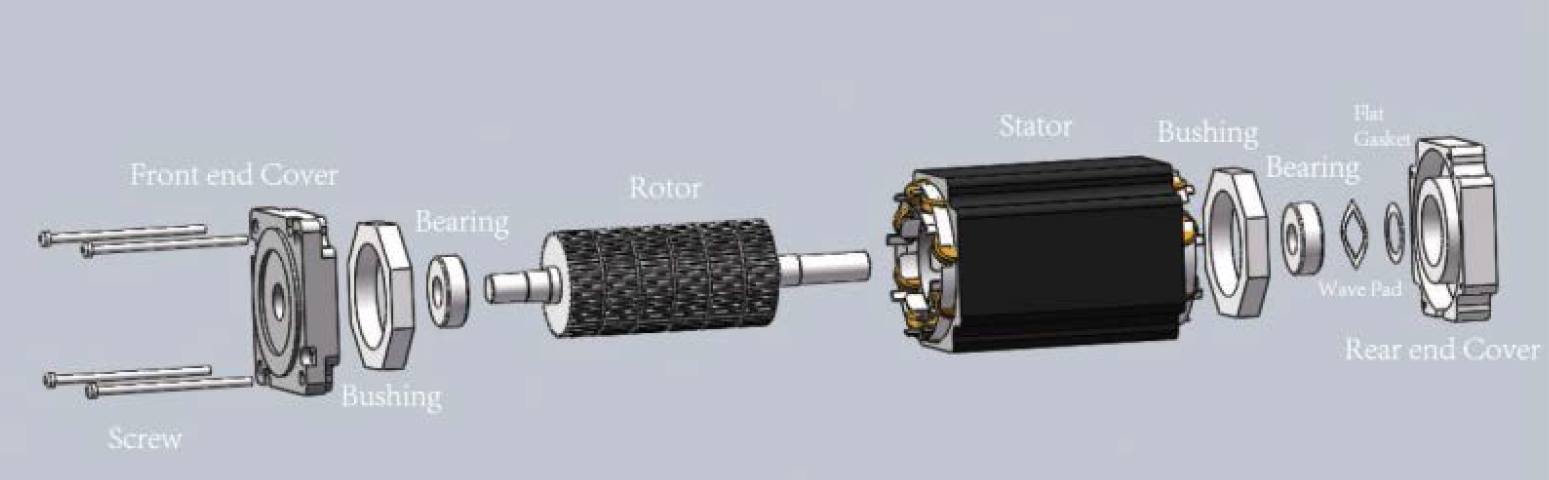 Ниже приведена иллюстрация составляющих частей шагового двигателя