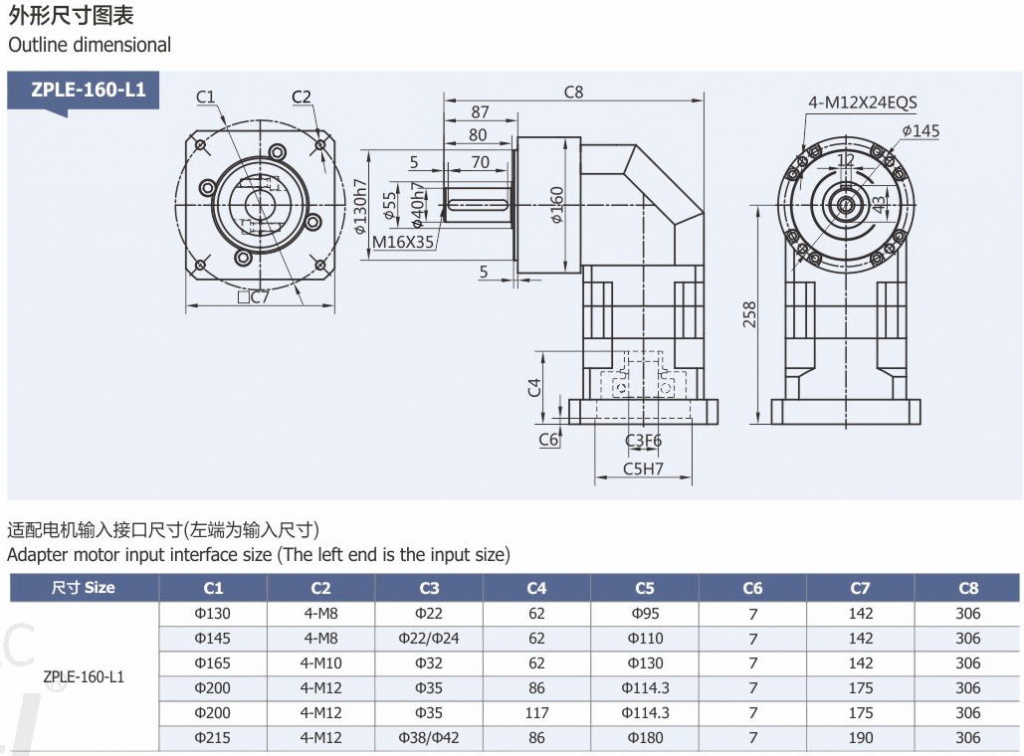 Планетарный редуктор ZPLE160 L1 создан для работы в паре с СМПМ сервомоторами переменного/постоянного тока, соответствуя всем предъявляемым требованиям к скорости вращения и точности позиционирования. Применение прямозубых шестерен с низкими допусками гарантирует невысокий люфт в пределах 12-18 угловых минут.