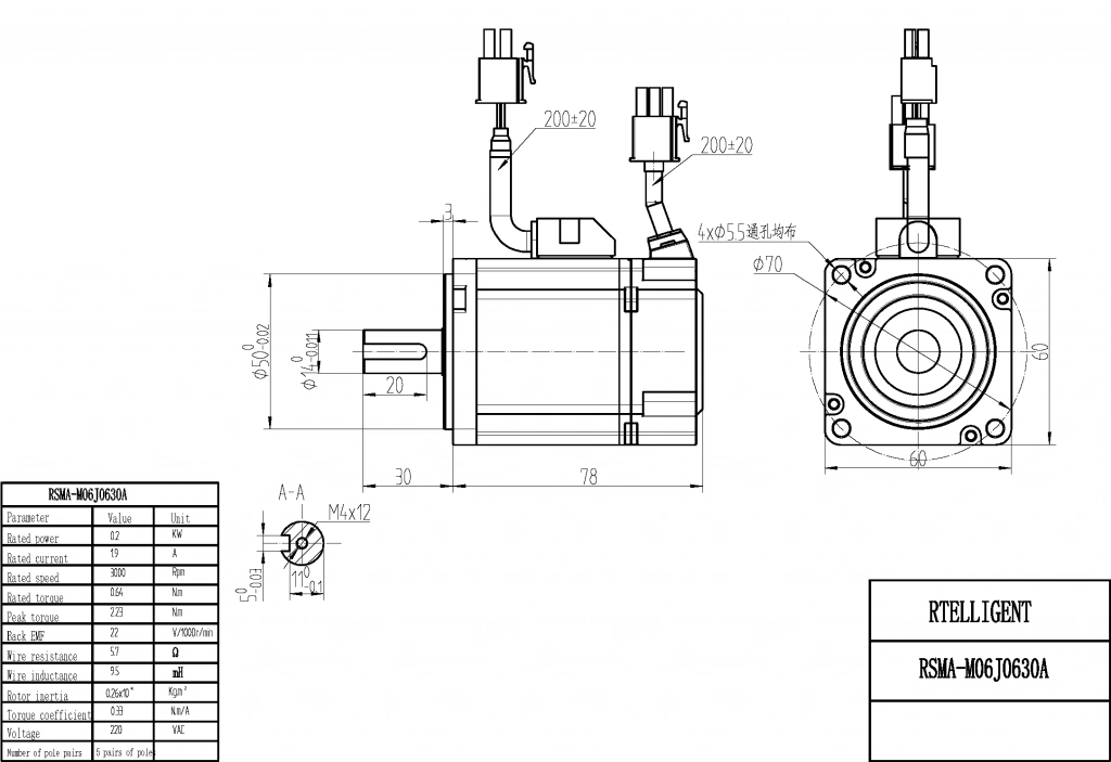 - STEP/DIR (синонимы STEP/SIGN, PULSE/DIR, PULSE/SIGN) - управление по 2 сигналам, логический 0/1 направление и меандр тактирования. Два оптоизолированных входа с сопротивлением 270 Ом для использования 5 В логики, при использовании напряжения выше 5В(12/24) в комплекте поставляется резистор на 2 кОм.Сервокомплект поставляется с приводом M06J0630A в базовом оснащении с Абсолютным энкодером TAMAGAWA с адресным пространством 17 бит, все параметры серводвигателя приведены в таблице ниже.