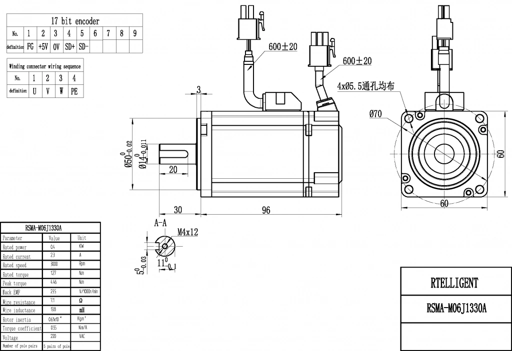 - STEP/DIR (синонимы STEP/SIGN, PULSE/DIR, PULSE/SIGN) - управление по 2 сигналам, логический 0/1 направление и меандр тактирования. Два оптоизолированных входа с сопротивлением 270 Ом для использования 5 В логики, при использовании напряжения выше 5В(12/24) в комплекте поставляется резистор на 2 кОм.Комплект поставляется с сервомотором M06H1330A в базовом оснащении с Абсолютным энкодером TAMAGAWA с адресным пространством 23 бита, все характеристики серводвигателя приведены в таблице ниже.